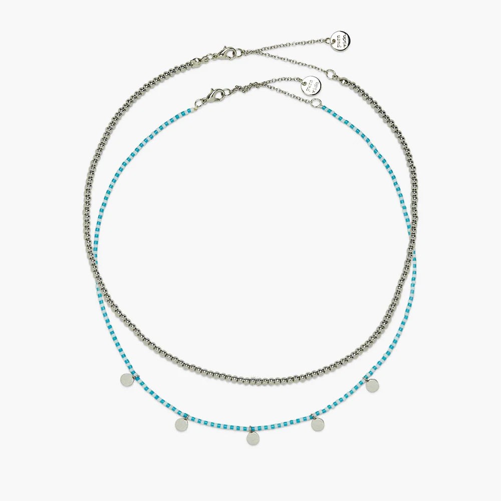 Take your layered look to the next level with the Cabana Necklace Set. Choose between a gold or silver finish, each set featuring two beaded styles and accompanied by mini coin dangling charms.