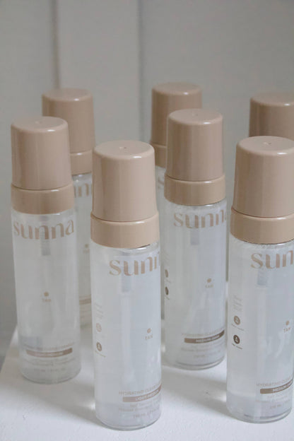SunnaTan Clear Express Mousse is a clear, fast-drying formula that allows for immediate dressing after application, with no rub-off or staining. It provides a sweet, non-overpowering citrus scent, and contains a proprietary odor blocker to eliminate typical sunless tanning odors. Made with natural and organic ingredients, it delivers a natural, sun-kissed tan in just 3-4 hours and is available in light-medium and medium-dark shades, ensuring a perfect match for all skin tones.