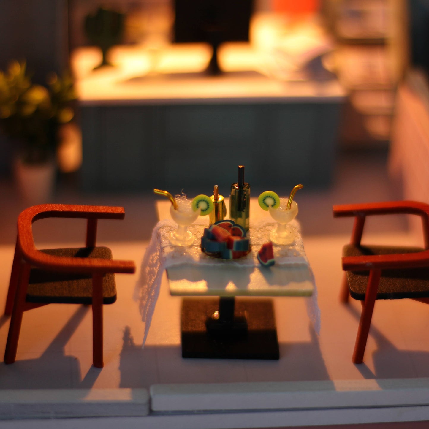 DIY Miniature House Kit: Pink Café with LED Lights by Hands Craft.