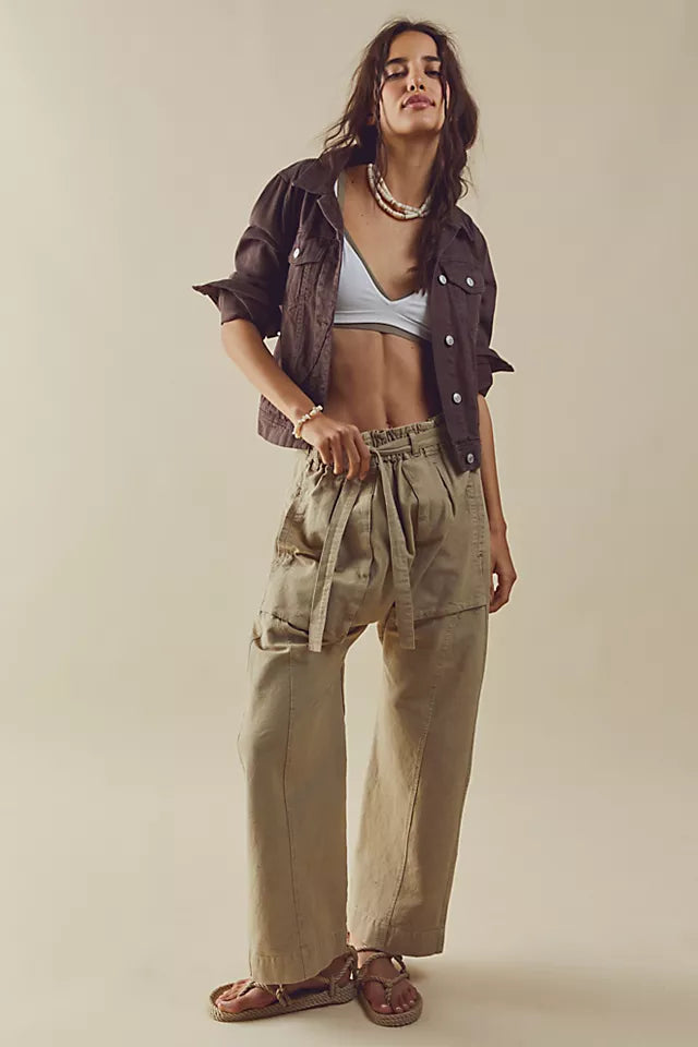 Just as effortless as they are versatile, these timeless pants are featured in a slouchy, harem-inspired silhouette with exaggerated drawstring waist and oversized patch pockets for added dimension.