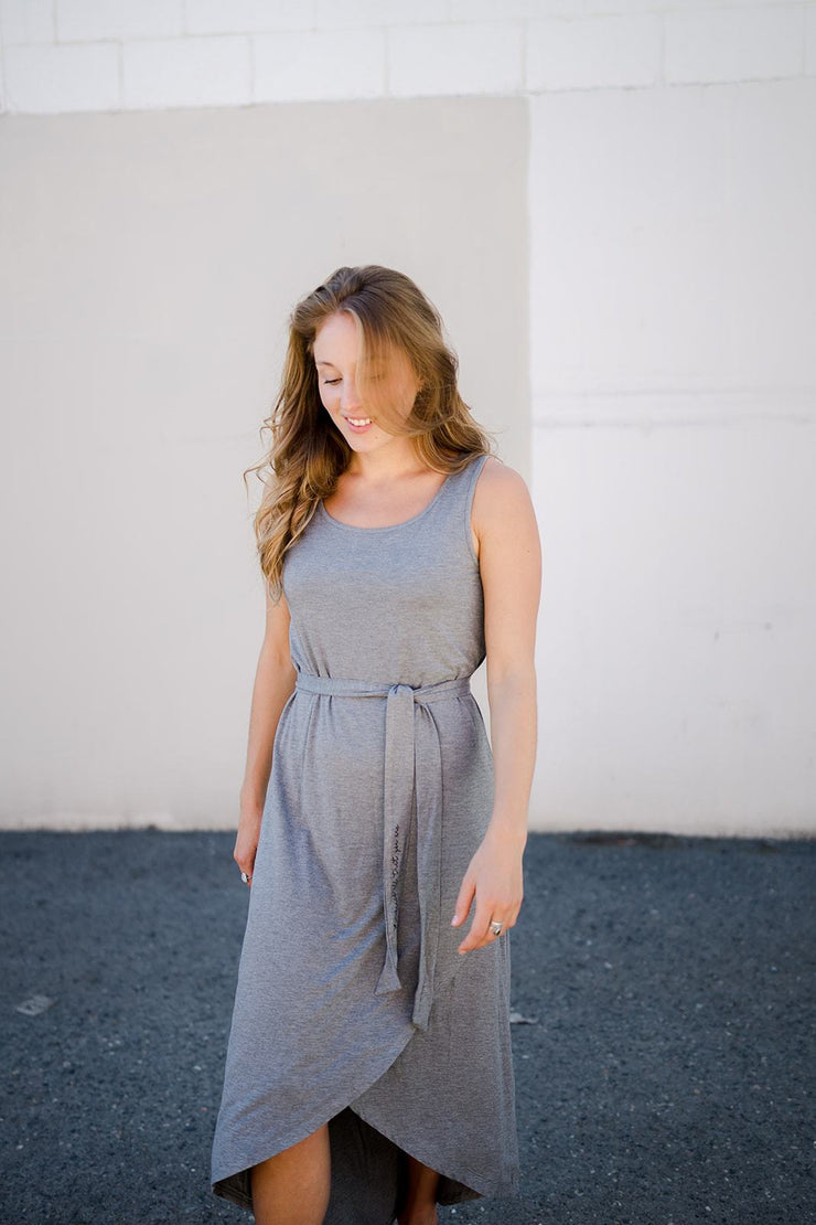 The perfect flow dress in our new summer Grey! This high to low black dress hangs beautifully, with or without a tie belt. Dress up with a pair of heels or wear it to the beach for maximum comfort. Fabric belt included.